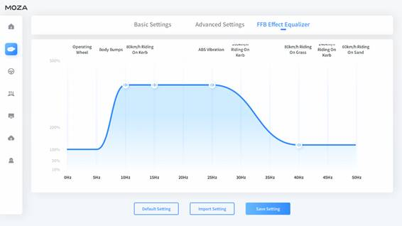 d. Mechanical force feedback strength: adjust the overall strength of the mechanical force feedback of the base motor. The mechanical force is the force simulated by the algorithm, which has nothing to do with the game force.