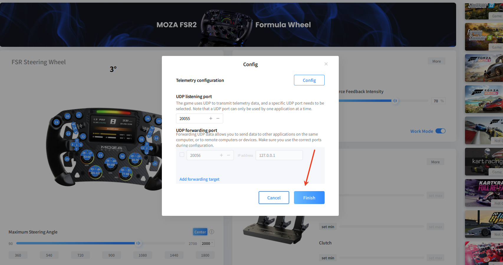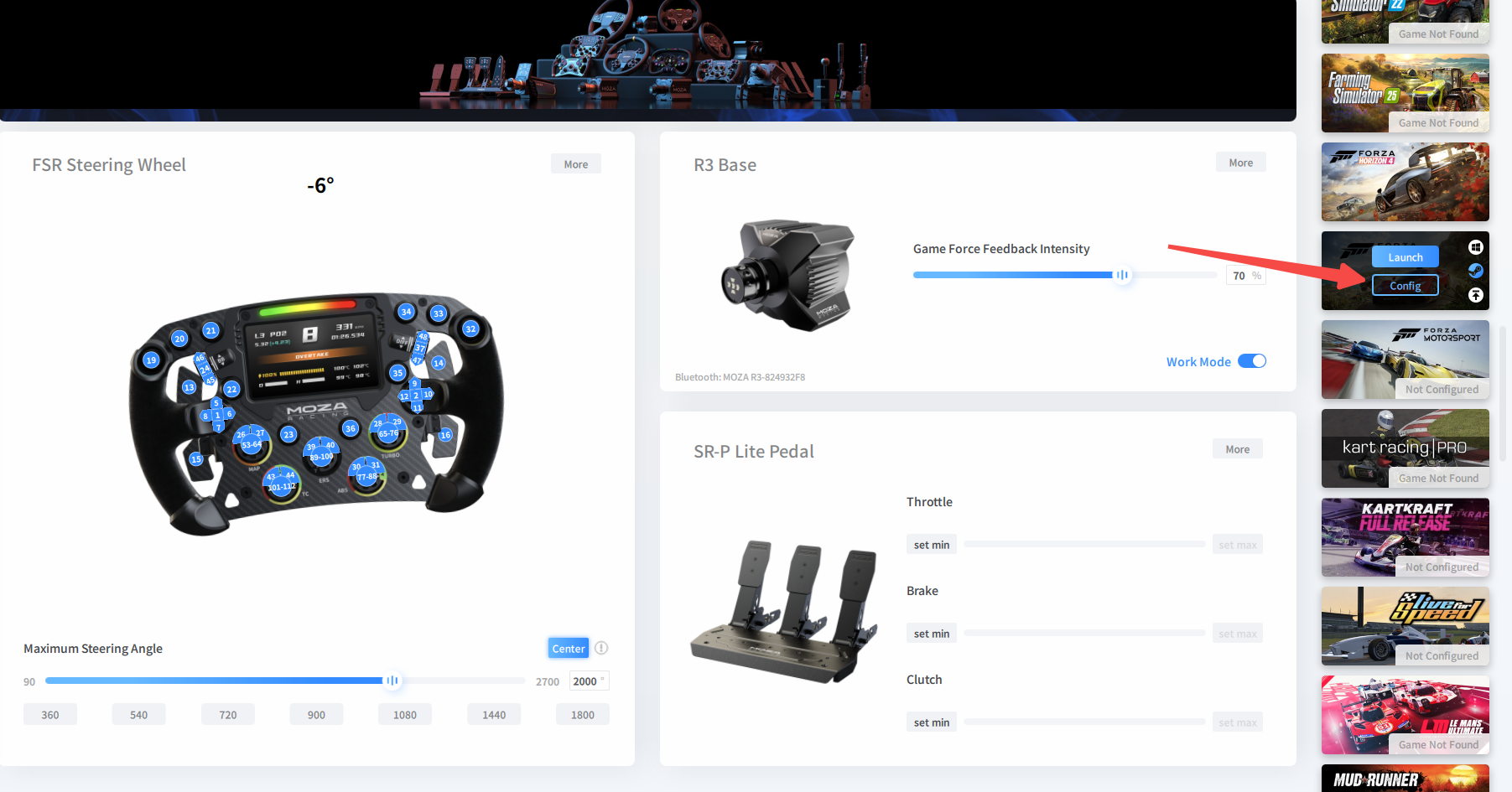 Step 4: Open "MOZA Pit House", make steering wheel angle zero before load game