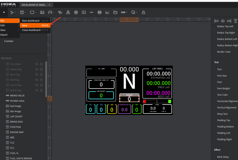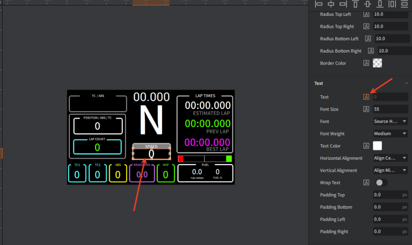 A: 1. Open the dashboard you want to edit, and select the speed element.
