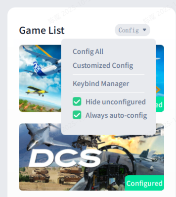 1. At the top of the Game List, click [Config], then open [Keybind Manager].