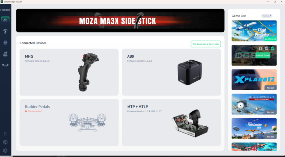 After connecting your hardware, download and install the MOZA Cockpit Software.