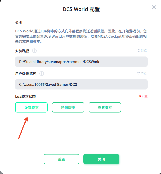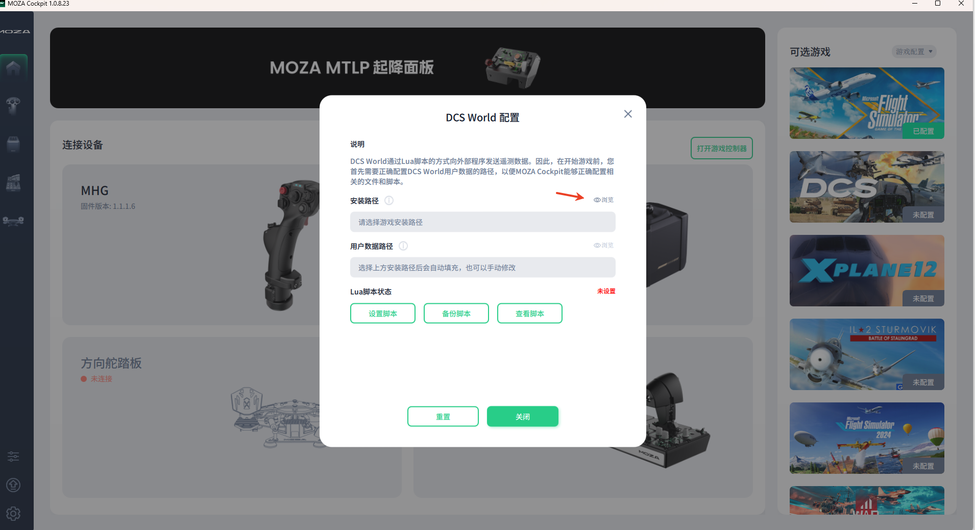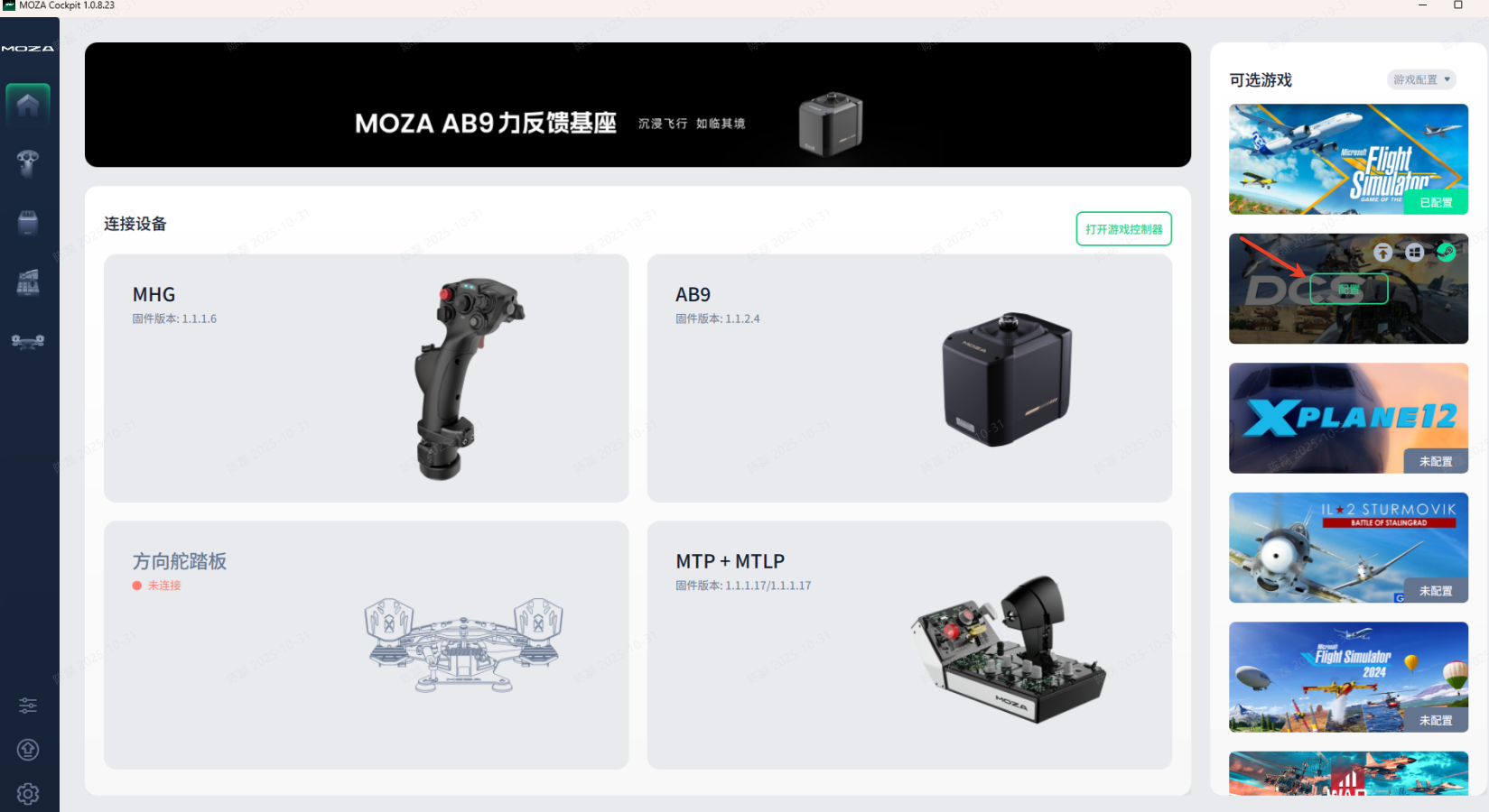 3.点击并浏览MOZA Cockpit,DCS配置页面的浏览