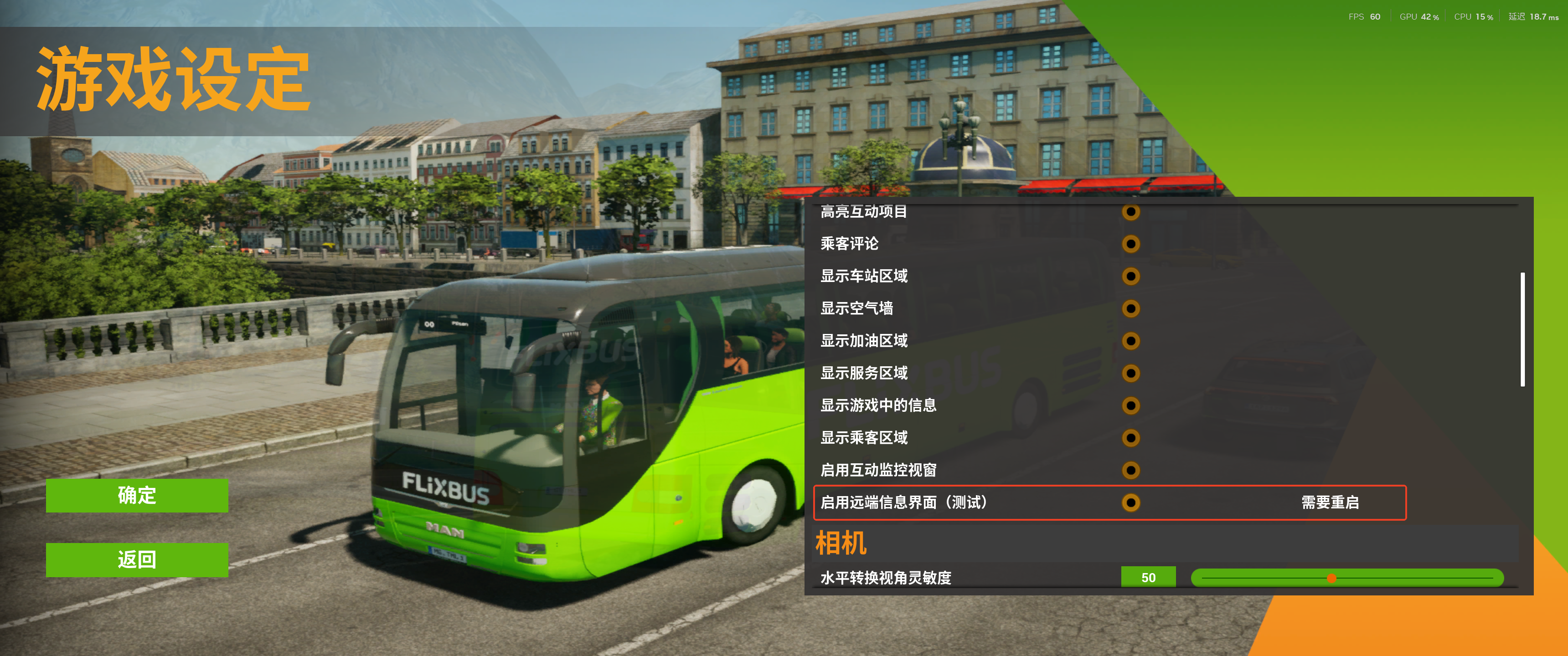 开启 启用远端信息界面(测试) 功能, 开启后需要重启游戏。